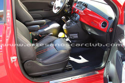 - Asientos Abarth Pack Performance con asientos de piel negra, costuras rojas y caberas integradas con apliques en aluminio.