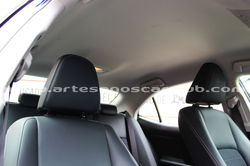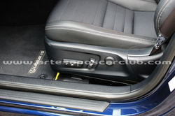 - Tapicería en piel/tela negra con costuras blancas de alto contraste con dash en negro.
